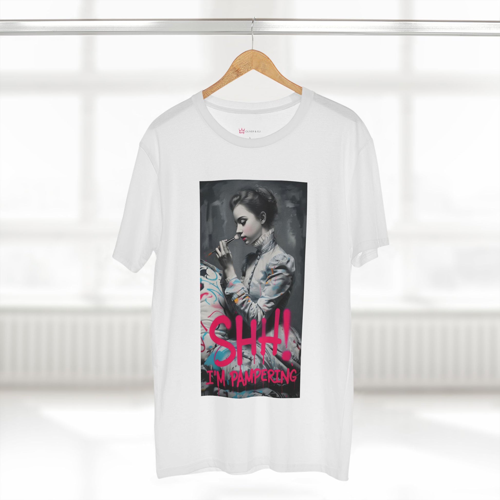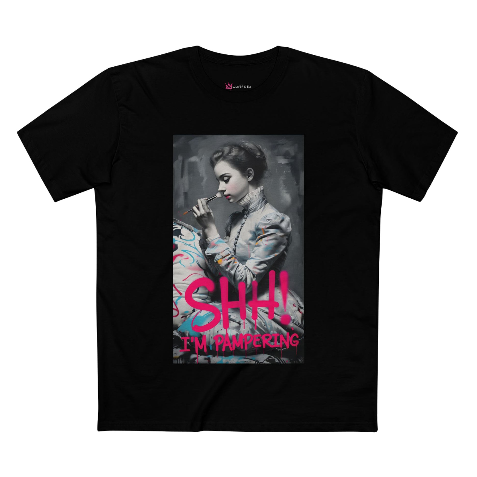 The SHH! I’m Pampering Tee turns indulgence into statement. A refined, art-driven visual celebrates the ritual of looking after yourself.