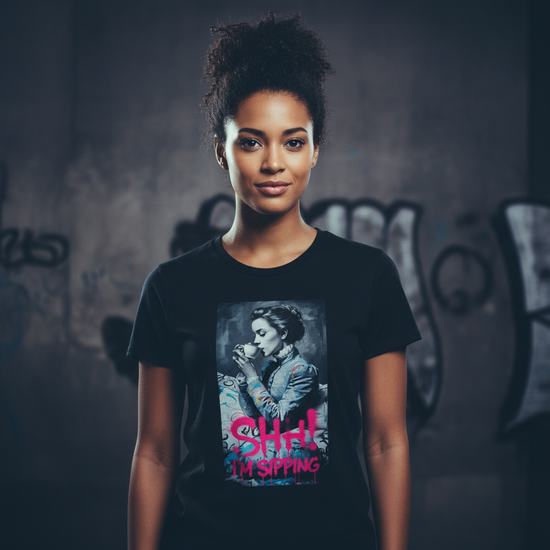 Slow down and savor the moment with the SHH! I’m Sipping Tee— a sophisticated blend of calm reflection and contemporary street art. Part of the SHH! Collection, this piece celebrates the beauty of savoring life’s simple pleasures, where every sip is a moment of personal indulgence and quiet joy.